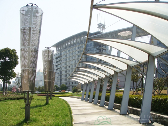 海寧市海洲廣場(chǎng)北區(qū)Ⅱ標(biāo)段(綠化工程)位于海寧市行政中心內(nèi),區(qū)域范圍由海洲路、高家橋河、丁橋港一路兩河圍成,綠化用地123000平方米。該工程為綜合性園林工程,分為17個(gè)分部,包括園路、林蔭停車(chē)場(chǎng)、人文廣場(chǎng)、林蔭廣場(chǎng)、親水平臺(tái)、浮雕、噴泉、景觀亭、景觀廊、休息廊、網(wǎng)球場(chǎng)、小方塊道路、假山、園形花廊、鋪裝停車(chē)場(chǎng)、綠化工程、給排水工程及電氣安裝等。