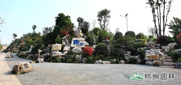 該工程位于瀘州城東長江東岸,面積近七公頃。其中,“東巖夜月”是瀘州老八景之一,景觀資源豐富。工程設(shè)計(jì)范圍為國窖大橋東岸橋頭節(jié)點(diǎn),總面積近5萬平方米。設(shè)計(jì)理念以生態(tài)園林為出發(fā)點(diǎn),以恢復(fù)東巖崢嶸峭壁,修復(fù)道側(cè)山體綠化,保護(hù)、改善、美化、提升區(qū)域生態(tài)環(huán)境為目標(biāo),本著以人為本、重視公眾參與的原則,充分利用現(xiàn)有的豐富自然資源及人文環(huán)境,規(guī)劃出一個(gè)既能滿足市民休閑娛樂,又能體現(xiàn)東巖公園特色的景觀場所。