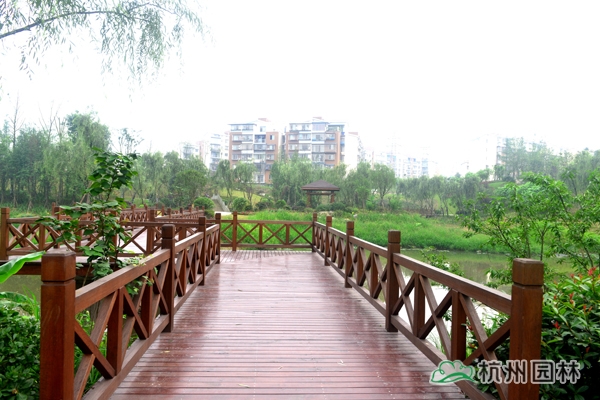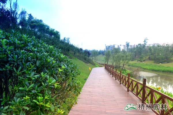 瀘州市玉帶河濕地公園(一期)工程位于四川省瀘州市龍馬潭區(qū),施工內(nèi)容包括完善公園一期120余畝范圍內(nèi)園林道路、植物種植、拱橋、曲橋、水上園路、景觀亭等基礎(chǔ)設(shè)施建設(shè),玉帶河片區(qū)截污干管建設(shè)等。工程于2013年8月開工,2014年5月竣工,歷時(shí)9個(gè)月。該工程榮獲“2014年度浙江省優(yōu)秀園林綠化工程銀獎”。