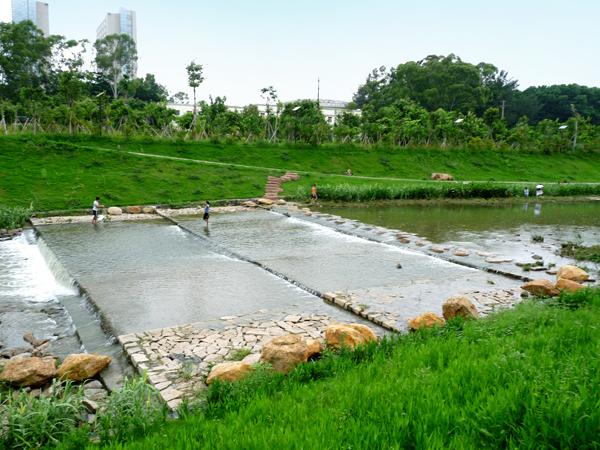該工程完工后,淺而寬闊的河道,清亮透徹的河水,駁岸上青青的草地,色彩艷麗的花卉,極具創(chuàng)意的硬質(zhì)小景,小巧的疊水平臺(tái)……如畫的生態(tài)美景和多彩的濱河景觀讓人備感身以愉悅,成為深圳市民散步休閑的好去處。