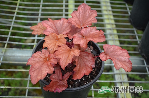 礬根又名小花腎形草,英文名為“Alum root”(因根部不規(guī)則膨脹而來),因此在引入中國的時候被翻譯成了“礬根”。礬根葉色繁多,且葉色會隨著季節(jié)、環(huán)境、溫度和光照條件的變化而改變。例如,‘蜜桃黃’在春天的時候,葉子展現(xiàn)出細膩的銀色光澤,成熟的葉片顏色會呈現(xiàn)紫色并略帶玫瑰紅;‘赤砂巖紅’的葉色會從桃紅色變?yōu)榱零~黃色,再變?yōu)榫G色帶有琥珀色;‘貴族紫’葉子的顏色會保持穩(wěn)定的紫色,冬天的葉子會變成銀色。