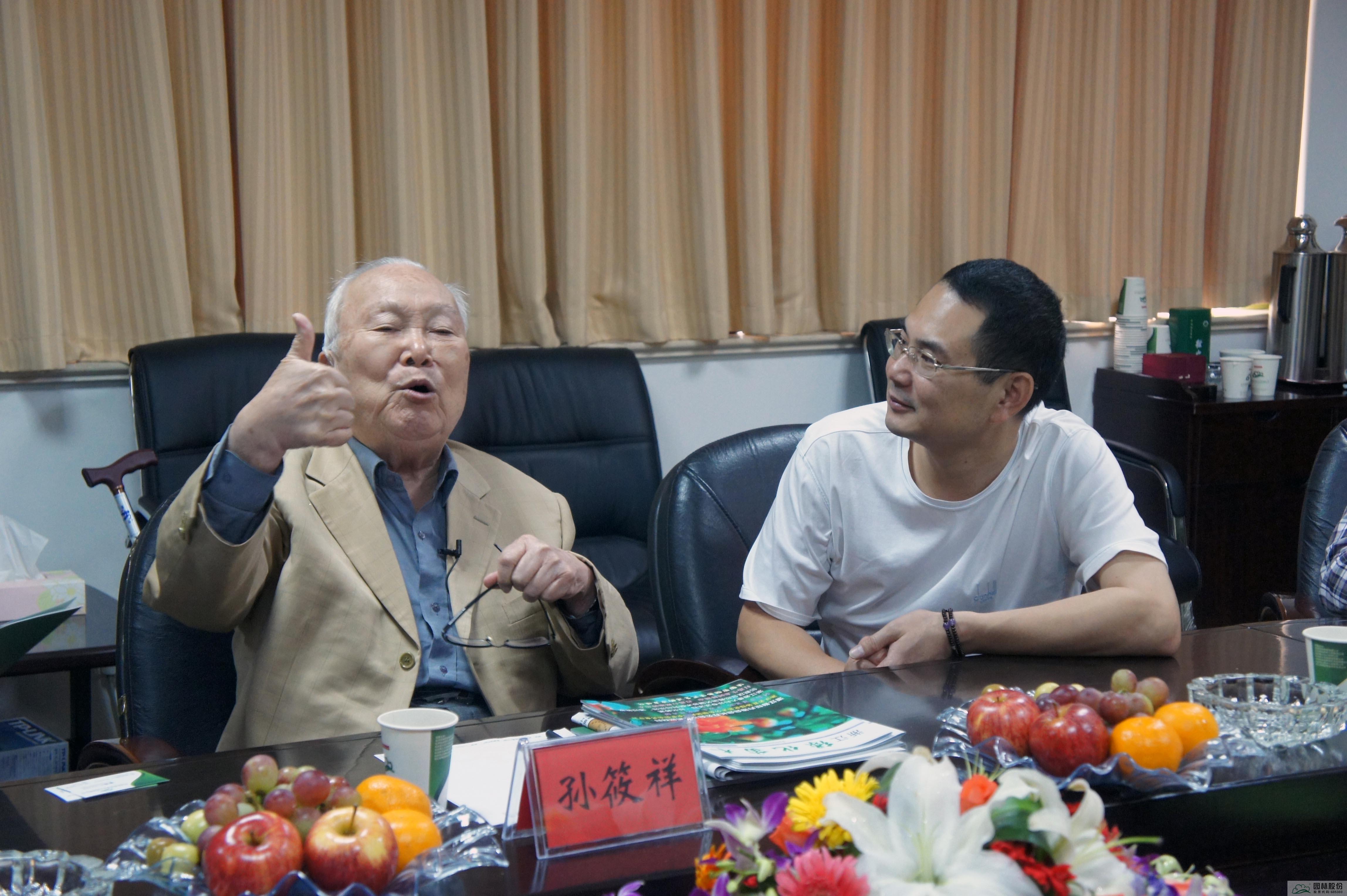 孫筱祥先生的學(xué)術(shù)思想和造園理念對風(fēng)景園林行業(yè)的發(fā)展產(chǎn)生了深遠(yuǎn)影響,作為眾多園林企業(yè)中的一員,園林股份同樣深受孫筱祥先生造園思想的影響。2011年9月,90歲高齡的孫筱祥先生攜夫人蒞臨企業(yè)總部,與董事長吳光洪等暢談造園理念,交流造園思想,對企業(yè)為中國園林事業(yè)做出的貢獻(xiàn)表示贊賞與肯定。
